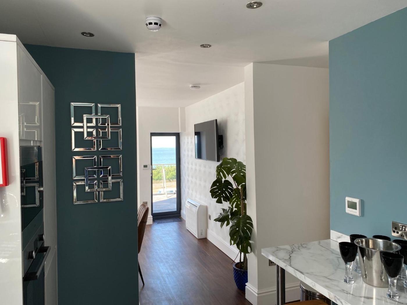 Apartment with Sea View - #201. This apartment located on the second floor has an open plan loungekitchen with a bay window sea view, leather sofa, and TV . Fully fitted kitchen has oven, ceramic hob, microwave, fridgefreezer, dishwasher and a breakfast bar for dining.crockery, cutlery and utensils supplied and a welcome pack with teacoffeesugar and fresh milk is supplied. A tea towel, a dishcloth, washing up liquid, and dishwasher tablets are provided as standard. One bedroom has a king-size bed with dressing unit, wardrobe, 40-inch TV and front-facing sea views. The second bedroom has a single bed with a wardrobe, TV and front-facing sea views. There is a shower room with quadrant shower, wash basin, shaver point, toilet and complimentary handwash and shower gel. Bedding and towels are provided. Daily servicing available on request. Pets are not allowed in this apartment. Flight of stairs to flat 201 - 33 steps ;