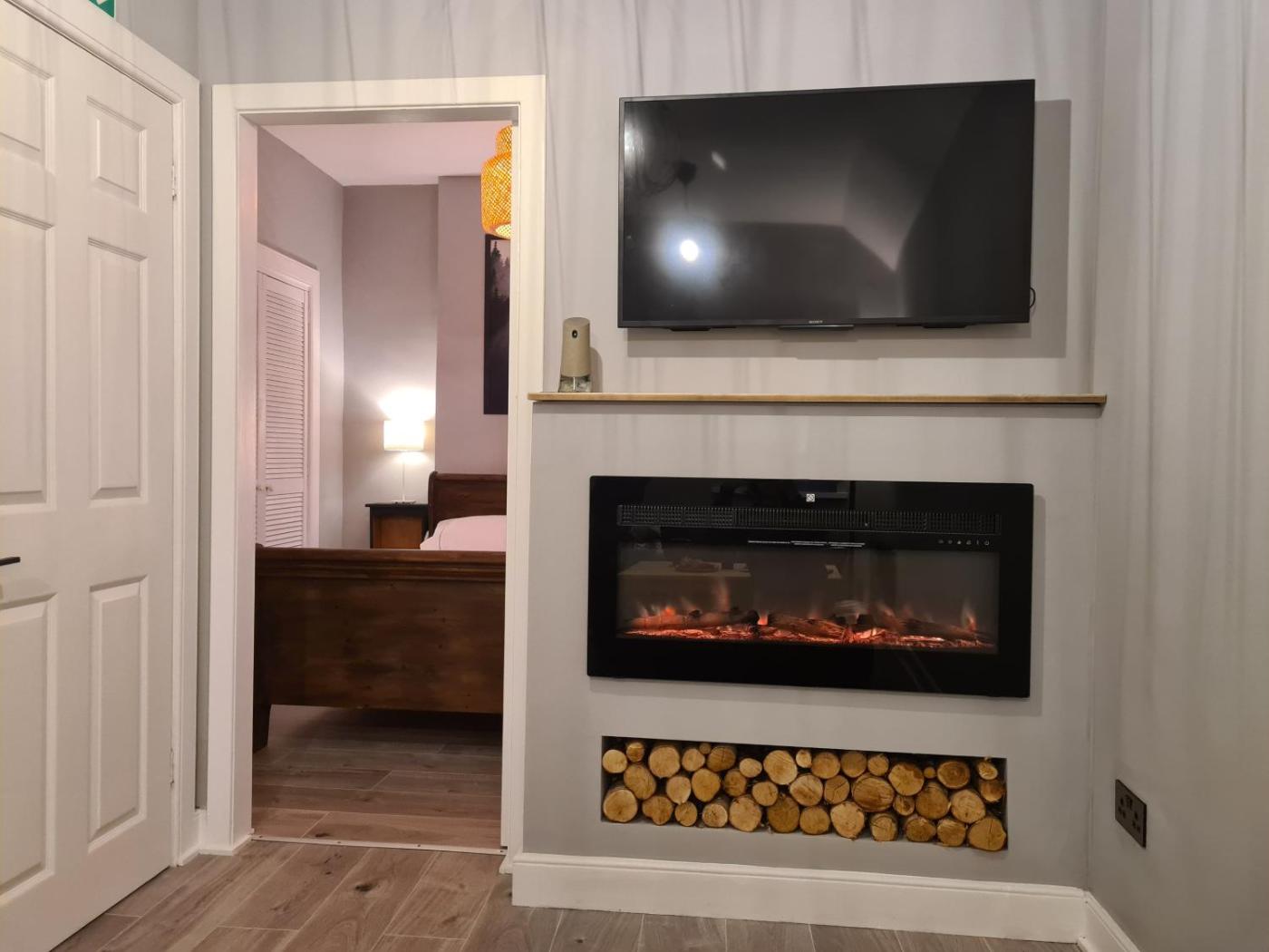 One-Bedroom Apartment. This apartments standout feature is the fireplace. Featuring a private entrance, this apartment is comprised of 1 living room, 1 separate bedroom and 1 bathroom with a shower and a hairdryer. In the kitchen, guests will find a stovetop, a refrigerator, kitchenware and an oven. This apartment features a washing machine, a tea and coffee maker, flat-screen TV with streaming services, as well as winechampagne for guests. The unit offers 2 beds.