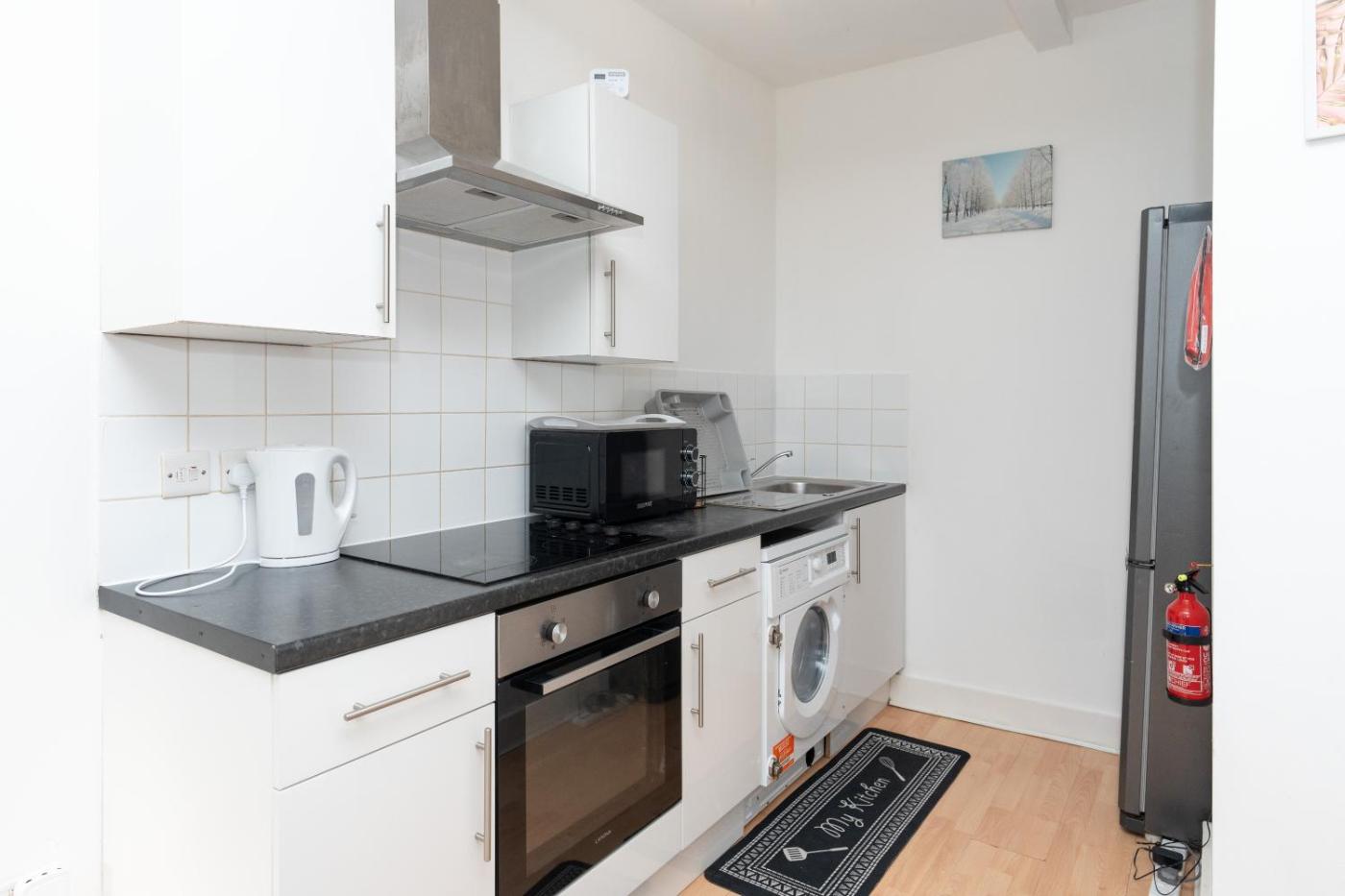 Two-Bedroom Apartment. This spacious apartment comprises 1 living room, 2 separate bedrooms and 1 bathroom with a bath and free toiletries. In the well-fitted kitchen, guests will find a stovetop, a refrigerator, an oven and a microwave. The apartment provides a washing machine, a seating area, a wardrobe, a flat-screen TV with streaming services, as well as a quiet street view. The unit offers 3 beds.