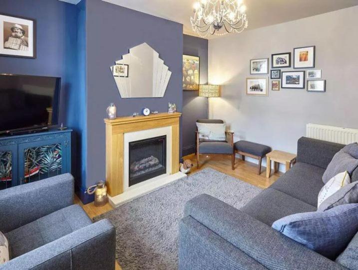 Three-Bedroom House. This holiday homes special feature is the fireplace. Featuring a private entrance, this holiday home comprises 1 living room, 3 separate bedrooms and 2 bathrooms with a bath and a hairdryer. The fully equipped kitchen has a stovetop, a refrigerator, a dishwasher and an oven. The holiday home features parquet floors, a seating area with a flat-screen TV with streaming services, a washing machine, a tea and coffee maker, as well as a dining area. The unit offers 4 beds.